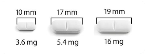 • Strength: Available in 3.6 mg, 5.4 mg, and 16 mg tablets