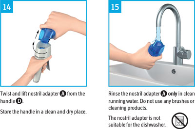 Cleaning of the inner surface of the nostril adapter is not required unless nasal discharge or other foreign material is adhered to the inner surface. If it is necessary to clean the inner surface, remove the nostril adapter and rinse as described below.