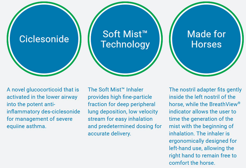 A combination of a novel glucocorticoid (ciclesonide) and advanced inhalation technology (Soft Mist Inhaler) designed specifically for horses with severe equine asthma.