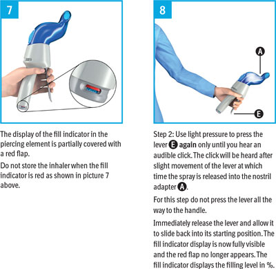 Each actuation is a two-step process that results in release of the drug (one puff).It consists of the following steps (pictures 5 to 8): ![]() |