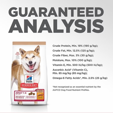 Antioxidants in this dry dog food blend support the immune system, helping your adult dog stay healthy and active. Crafted with natural ingredients and free from artificial preservatives, Hill's Science Diet Adult 1-6 Chicken & Brown Rice is a wholesome choice for your furry friend.