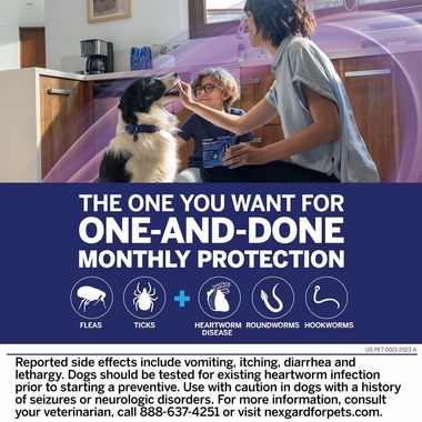 Designed for dogs and puppies 8 weeks of age and older (weighing at least 4 pounds), Nexgard Plus eliminates fleas before they can lay eggs and kills ticks that may transmit harmful diseases. With just one tasty chew each month, your dog stays protected year-round?ain or shine.