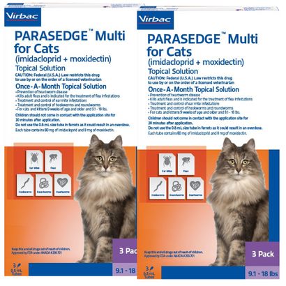 • Easy Application Process: The convenient topical application makes it easy to administer Parasedge Multi. Simply apply the solution to the back of your cat's neck for hassle-free parasite protection.