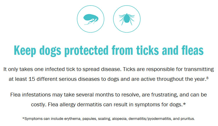 Use with caution in dogs with a history of seizures. Simparica Trio contains sarolaner, a member of the isoxazoline class, which has been associated with neurologic adverse reactions including tremors, ataxia, and seizures in dogs with or without a history of neurologic disorders. The safe use of Simparica Trio has not been evaluated in breeding, pregnant, or lactating dogs. The most frequently reported adverse reactions in clinical trials were vomiting and diarrhea. See full Prescribing Information, attached.