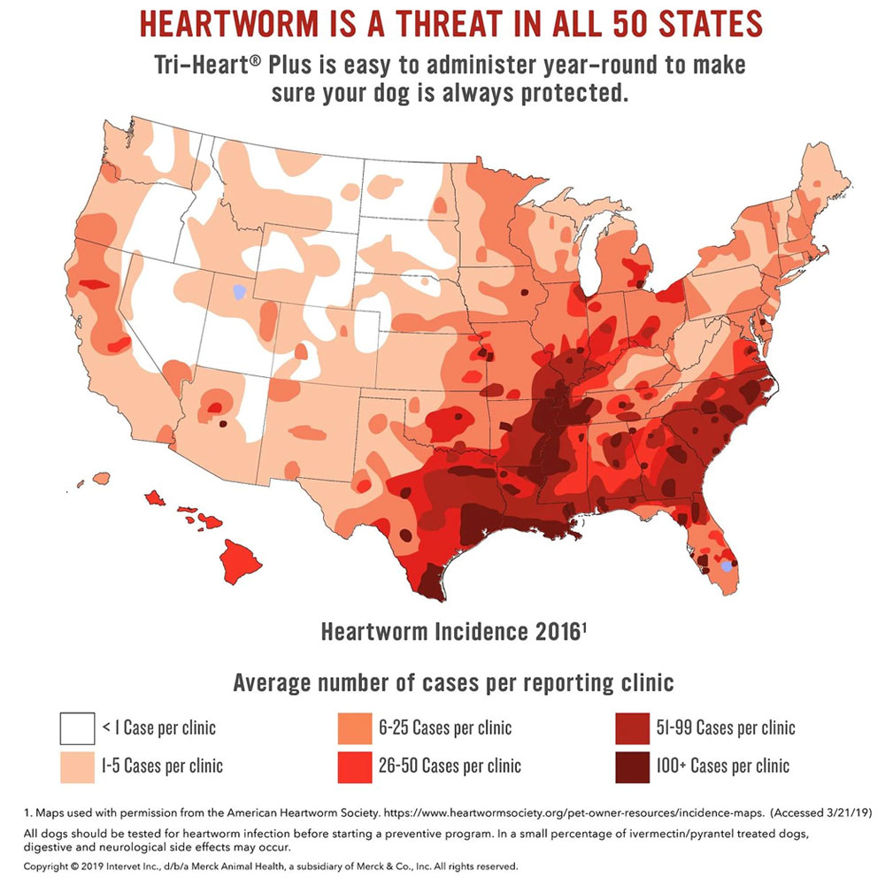 Monthly treatment with Tri-Heart Plus Chewable tablets also provides effective treatment and control of ascarids (T. canis, T. leonina) and hookworms (A. caninum, U. stenocephala, A. braziliense). Clients should be advised of measures to be taken to prevent reinfection with intestinal parasites.